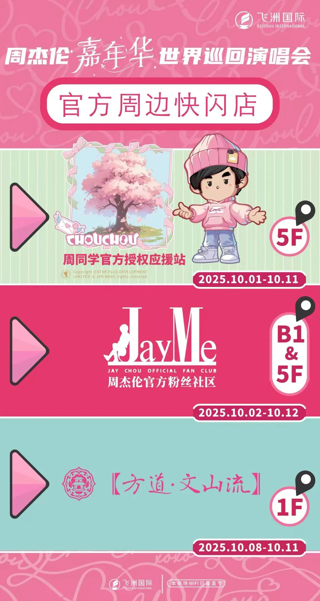 毗邻上海体育场的飞洲国际广场同样热闹。B1层,不少歌迷在打造应援妆容,带动餐饮区消费升温。商场内的周杰伦官方周边快闪店,蒸汽朋克风限定公仔、歌词手办等20多个品类的单品备受青睐。此外,商场推出的“10.1元团999减101元”优惠券、满1888元抽大奖等活动,进一步刺激消费,部分品牌超额完成国庆销售目标。南洋1931也推出了演唱会专属福利,10月1日—11月30日,粉丝到店消费可享店铺折扣。